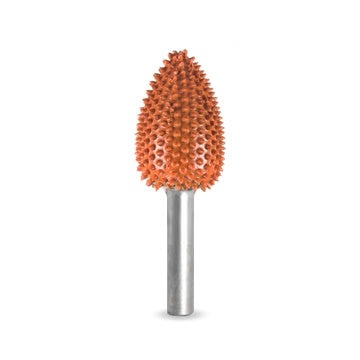 The Saburrtooth Flame 3/4" Orange Ex-Coarse Grit Burr 1/4" Shank boasts a number of key features that set it apart from other deburring tools on the market. Its 1/4" shank ensures a secure fitting in drills and rotary tools, reducing the risk of slippage and improving overall performance. The ex-coarse grit also provides an aggressive material removal capability, making it possible to tackle even the toughest deburring tasks with ease.