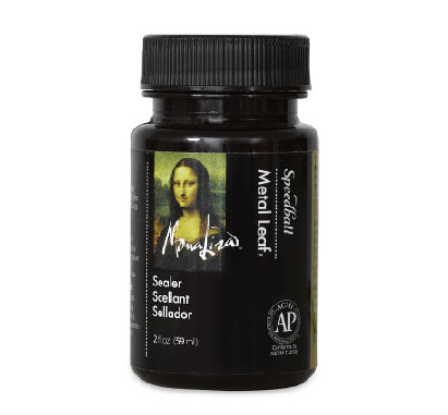 Specially formulated to keep metal leafing projects from tarnishing, Mona Lisa Water-Based Sealer is available in 2oz. and 32oz. sizes and cleans up easily with soap and water.