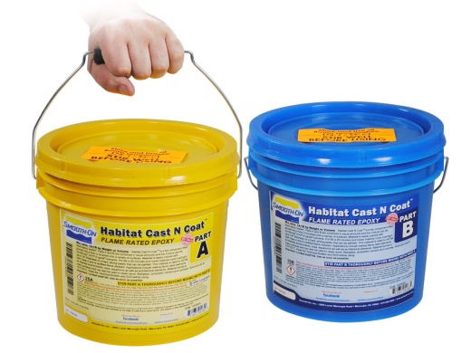 Habitat Cast N Coat™ is a two-component, liquid epoxy that can be cast solid or thickened for brushing on/troweling on to vertical surfaces. This epoxy system cures to a rock-hard solid with negligible shrinkage, making it ideal for fabricating public space applications.
