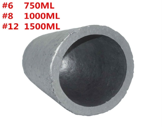 We offer three sizes of Silicon Carbide Graphite Crucibles to cater to different metal smelting needs. Our #6 crucible has an ID of 102mm (4 inch) diameter x 125mm depth, a thickness of 13mm, and an OD of 128mm diameter x 145mm height. It has a capacity of 750ml and can hold approximately 12lbs of bronze or 4lbs of aluminum. Our #8 crucible has an ID of 120mm (4-3/4 inch) diameter x 155mm depth, a thickness of 15mm, and an OD of 150mm diameter x 175mm height. It has a capacity of 1000ml and can hold approximately 16lbs of bronze or 7lbs of aluminum. Our #12 crucible has an ID of 130mm (5-1/4 inch) diameter x 160mm depth, a thickness of 15mm, and an OD of 160mm diameter x 180mm height. It has a capacity of 1000ml and can hold approximately 27lbs of bronze or 9lbs of aluminum.