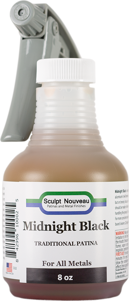 Traditional Midnight Black Patina by Sculpt Nouveau is a game-changer for metal finishing. This remarkable patina reacts on a wide range of metals, including aluminum, bronze, brass, copper, iron, steel, and zinc/galvanized, to produce a stunning aged black finish. With its fast reaction times and excellent durability, you can achieve a beautiful, long-lasting finish that will elevate your metalwork to the next level.