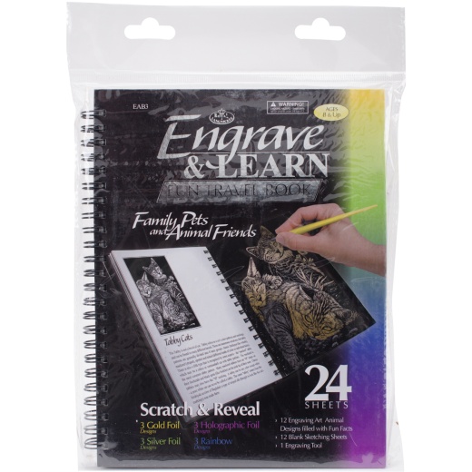 Engraving Art Travel Book Family Pets & Animal Friends Royal Brush-Engraving Art Travel Book: Family Pets And Animal Friends. A complete engraving art book focused on animals of the world, ideal for any age artist. Constructed with quality artist board and professional artist materials. This package contains one 8-3/4x7x1/2 inch spiral bound book with twelve pages of pre-printed designs, twelve blank sketching sheets, one scrape tool and easy to understand engraving instructions. WARNING: Choking Hazard- small parts. Not for children under 3 years. Recommended for ages 8 and up. Imported.