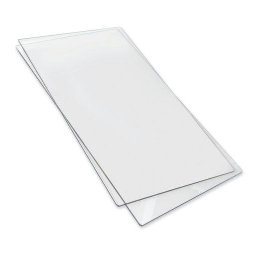 This pair of Cutting Pads was specially designed for use in the Big Shot Plus Machine. Constructed of high-quality polycarbonate plastic, these see-through Cutting Pads allow for easy die-cutting of Sizzix steel-rule dies (Bigz Plus) in the Big Shot Plus machine. Simply sandwich the die and material to be cut between the Cutting Pads and roll through the machine. A Premium Crease Pad may be needed in place of one Cutting Pad when die-cutting Sizzix steel-rule dies containing crease rule.