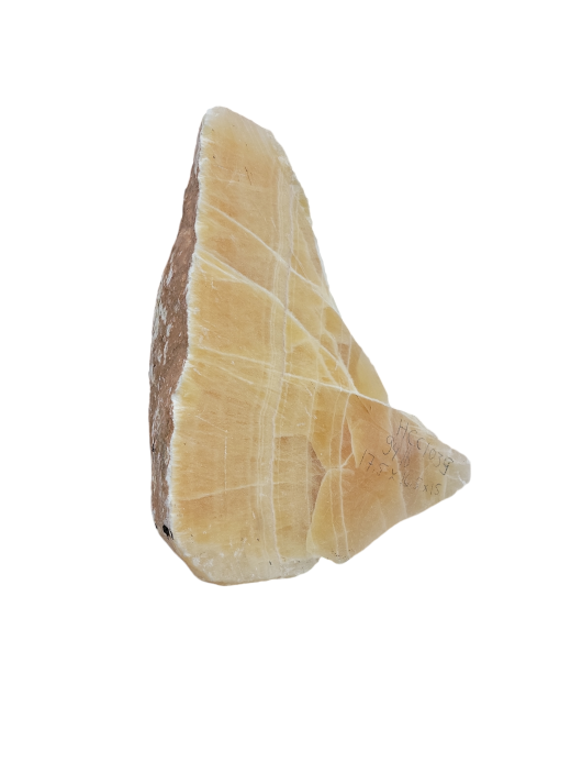 Comparable in characteristics to onyx and marble, Honeycomb Calcite can provide a colorful and dramatic accent stone for architectural and artistic applications. It is an unusual form of calcite as a result of its strength, stability, luminous quality and colors. The color ranges from a soft, pale sunshine lemon yellow to a deep rich honey golden amber depending on the thickness of the stone. When Honeycomb Calcite is cut, it exhibits its unique honeycomb-like structure. The honeycomb look results from the growth of long, fibrous or tubular calcite crystal cells outlined by white colored "membranes" surrounding each cell.