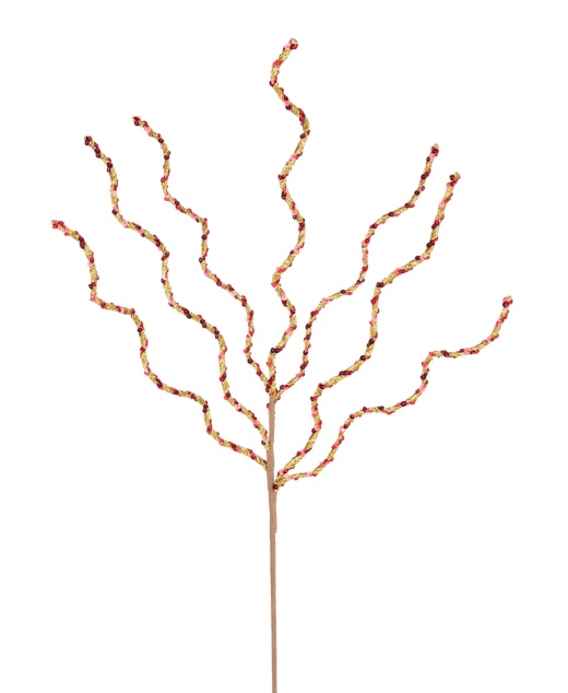 34"L Fabric/Sequin Curly Twig Spray - Gold/Laser Red