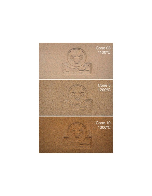 Caramel stoneware clay with 40% impalpable grog 0-0.2 mm (up to 80 Mesh). Formulated for artistic ceramics, it is ideal for throwing and modelling smooth pieces with fine details. The high content of grog confers an excellent behaviour during drying and firing. Depending on the firing temperature, it develops a beautiful range of natural tones, from oatmeal beige to caramel brown, which create a warm base that is highly appreciated in ceramic decoration. Suitable for tableware (food-safe), according to ISO 6486. Available in extruded body (moist form).