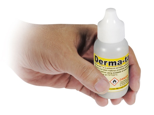 Derma-tac™ silicone prosthetic adhesive is a pressure sensitive adhesive designed for temporarily adhering silicone and latex makeup prosthetic appliances to the skin.