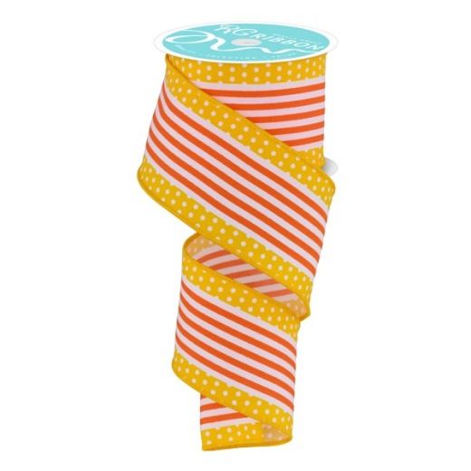 2.5"X10YD VERTICAL STRPE WITH POLKA DOT EDGE - WHITE, ORANGE AND YELLOW - RGF1301J9