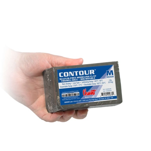 Contour™ Clay (an updated variation of Monu-Melt™ clay) is a precision sculpting medium that shapes, smooths, and carves easily to hold exceptional surface detail. Contour™ clay can be hand sculpted or tooled and applied to armatures of any size from tiny miniatures to giant monuments and memorials. Contour™ clays also scale up beautifully without sacrificing crisp edges or quality. The warm gray color helps facilitate viewing profile lines and surface textures when sculpting. Ultra-Fine detailing is most effective with room temperature clay (72°F/23°C).