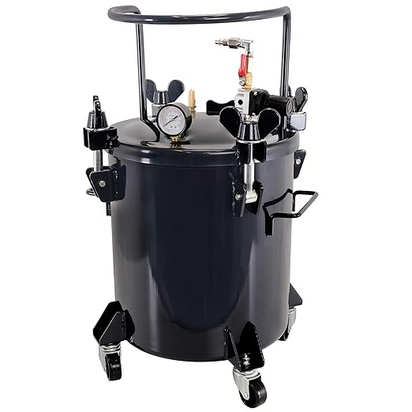 - Tank has a clamp-on lid with an airtight sealing gasket. The lid has an air pressure regulator with air inlet shut off ball valve, air pressure gauge from 0 to 100 psi, safety air relief valve and an air release outlet cock valve.