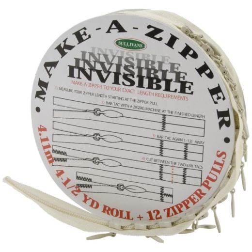Sullivans Make-A-Zipper Kit Invisible 4.5yd Cream SULLIVANS: Make-A-Zipper Kit Invisible. Make your own zipper that fits into your exact length requirements! It is easy: just measure your zipper length starting with the zipper pull then bar tac with a zigzag machine at the finished length. This package contains a 4-1/2 yard roll of Make-A-Zipper and twelve zipper pulls. Available in a variety of colors, each sold separately. Imported.