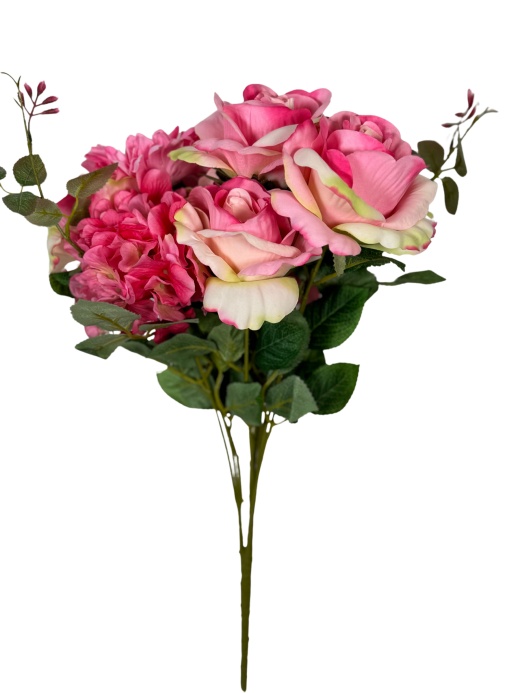 Add a bold pop of color to your floral designs with this 20-inch Hot Pink Rose Gerber Hydrangea Spray. Featuring a beautiful combination of realistic roses, Gerbera daisies, and hydrangeas, this artificial floral spray brings vibrant elegance to any arrangement.