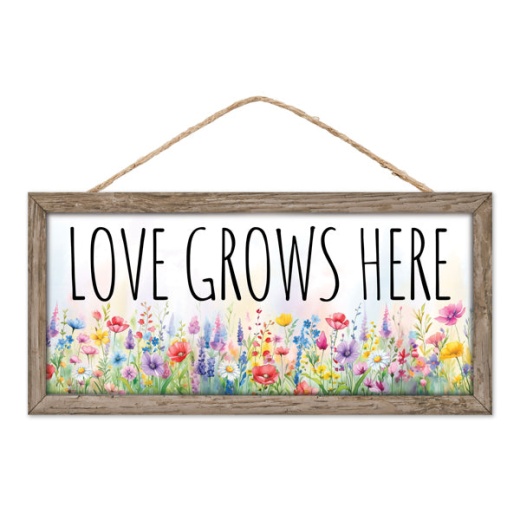 12.5"L X 6"H LOVE GROWS HERE SIGN - WHT/BRN/PNK/PRP/YLW/GRN - AP7386