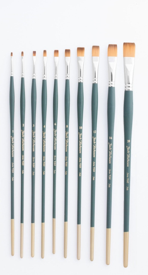The fiber feels and responds like sable; is full-bodied and carries oil or acrylic just like sable. Even loaded with paint, it will come to a razor edge in the brights. The rounds are stout and come to a strong firm point. Because of their softness, they are ideal for glazing. The soft touch of the fiber and the blending potential makes this a perfect series for casein work.