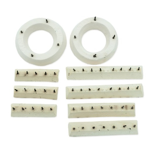 Includes 9 stilts in a variety of sizes from the Ring and Bar Series. A great kit to have on hand for those last minute kiln loads.
