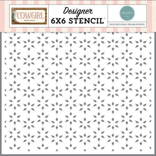Cowgirl Stencil 6"X6" Western Floral Stencils are perfect for using on mixed media, card making, scrapbooking, textile art and so much more. Use them together or on their own. They are made from durable mylar and can be used with paint, ink, ink pads, chalk, mica mists and more. They are a great addition to your die cutting embossing machine. Stencils can also be used to dry emboss for a more delicate effect. This package contains 6x6 inch stencil.