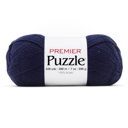 Premier Puzzle Solids Yarn Navy In need of a solid colored yarn to accompany Premier Puzzle? These 14 colors of Puzzle Solids allows you to effortlessly match with the beautiful blended stripes of Puzzle. Puzzle solids are also great on their own to make beautiful blankets, accessories, and more. Weight Category: 5/ bulky. Content: 100% Acrylic. Put up: 7oz/ 200g, 328yd/ 300m. Gauge: 15sX20r = 4in/10cm on size US size 10/6mm knittting needles. Suggested crochet hook US size J10/6mm. Dyelotted: we try but are not always able to match dyelots. Care: Machine wash-cold-permanent press, Tumble dry-normal-low heat, Do not bleach, Iron low heat, Dryclean any solvent except thrichloroethylene. Comes in a variety of colors. Each sold separately. Imported.
