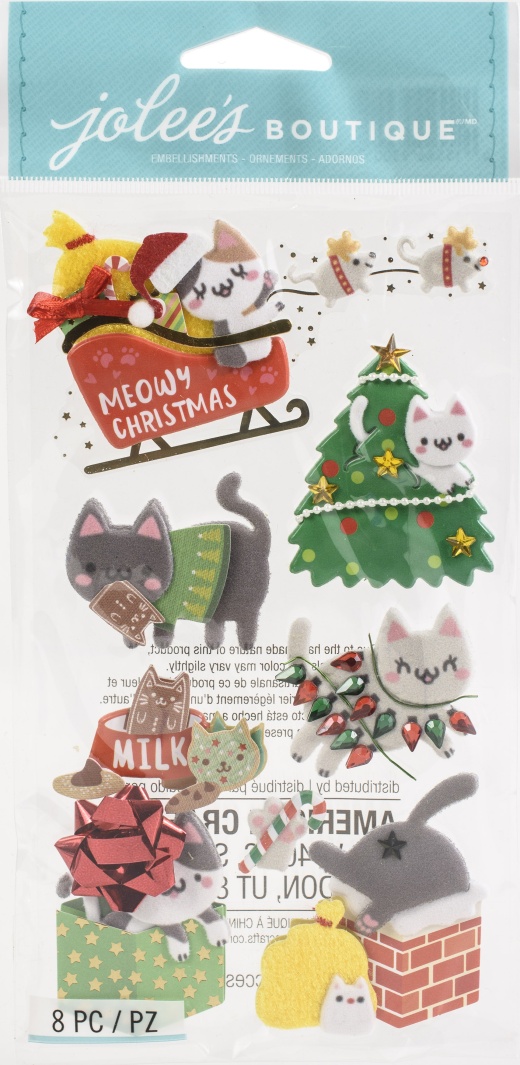 Jolee's Boutique Themed Embellishments 8/Pkg Meowy Christmas These are fun little pieces to add to any card making or scrapbooking page for a great pop of color! This package contains eight embellishments on one 3.75x7 inch backing sheet. Design: Meowy Christmas. Imported.
