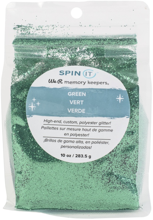 We R Memory Keepers Spin It Extra Fine Glitter 10oz Green Add some sparkle to your projects with colorful glitter! This package contains 10oz of We R Memory Keepers Spin It Extra Fine Glitter. Available in a variety of colors. Each sold separately. Imported.