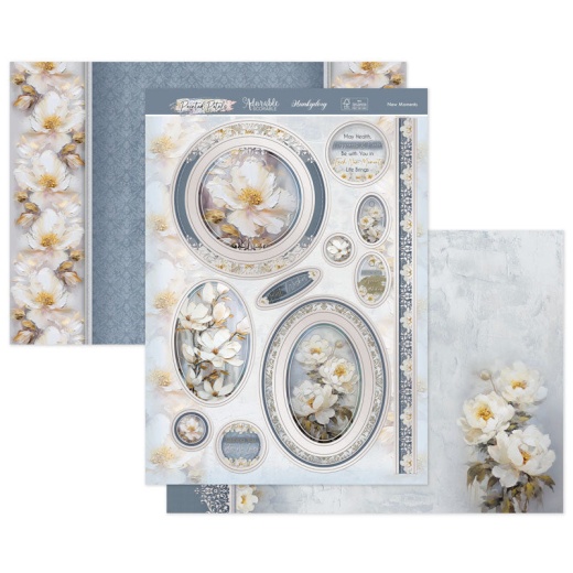 Each image is perfectly complemented with a cool natural colour palette of leafy greens, blush pinks, sky blues and floral purples. Find distressed canvas textures, thick paint strokes, swirls, damasks and floral patterns working alongside the imagery perfectly. All adorned with Hunkydory's signature stunning silver foiled frames, swirls and detailed accenting.
