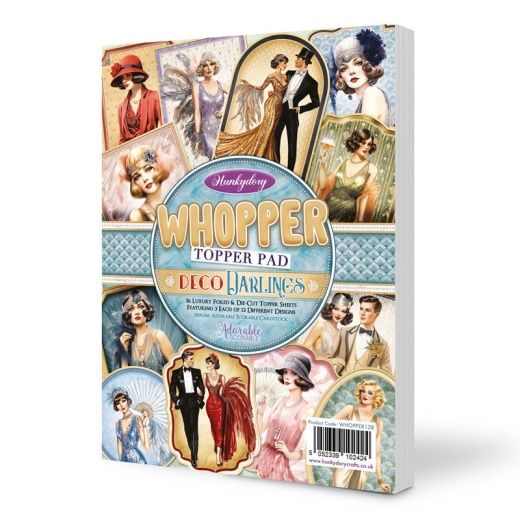 The Deco Darlings Whopper Topper Pad is filled to the brim with glamorous and nostalgic Art Deco-style images, featuring stylish women and couples in a whole range of captivating colours and designs. With geometric Deco-style patterns, gleaming gold details, marbled patterns and Deco-style fonts throughout, this timeless pad is sure to be popular for people of all ages and will be a resource you can turn to time and again for year-round crafting.
