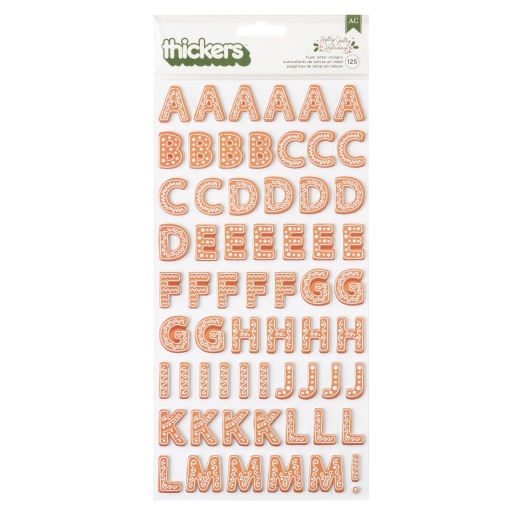 Crate Paper Holly Jolly Thickers Alphabet Introducing the Holly Jolly Holiday Collection by Crate Paper the perfect ensemble for all your holiday crafting needs! This festive collection includes a variety of cards, stickers, ephemera, and beautifully patterned papers, all designed to inspire your creativity. Whether you're making holiday cards, personalized gift tags, or stunning scrapbook pages, this collection has everything you need to bring your holiday projects to life. With cheerful Christmas designs, vibrant colors, and elegant gold foil accents, you can create unique and heartfelt holiday crafts that will delight your friends and family. Embrace the joy of the season and let your imagination run wild with the Holly Jolly Holiday Collection. Sweeten your holiday crafts with Alphabet Thickers! Featuring 125 gingerbread cookie-inspired letters with white frosting designs and foam backing for a 3D effect. Perfect for scrapbooking, card making, and more.