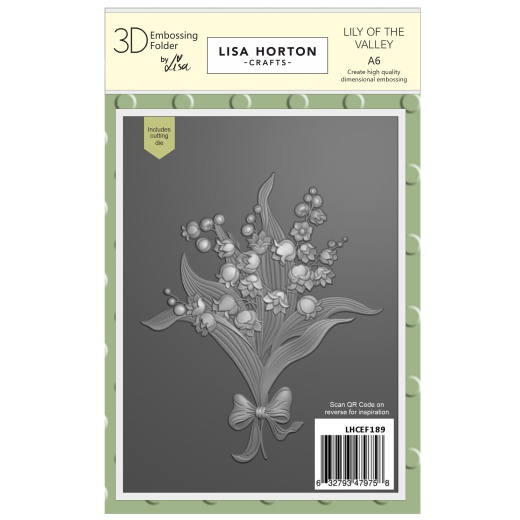 Lisa Horton Crafts A6 Embossing Folder And Die Lily Of The Valley Celebrate spring with the Lisa Horton Crafts 3D Embossing Folder, Lily of the Valley. This A6-sized folder features a delicate bouquet tied with a bow, adding timeless elegance to any project. Simply emboss your paper to reveal a beautifully raised floral design. An included cutting die allows for easy layering, perfect for card-making and scrapbooking.