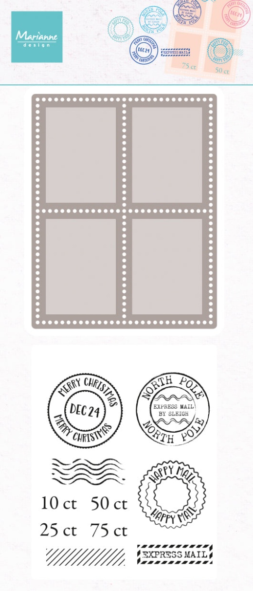 5 pcs die 63 x 80 mm, 10 pcs stamps 61 x 68 mm