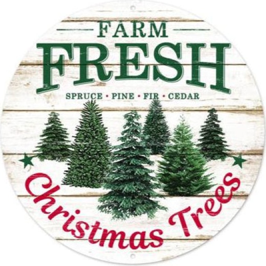 8"DIA FARM FRESH CHRISTMAS TREES SIGN - GREEN/RED - MD0929