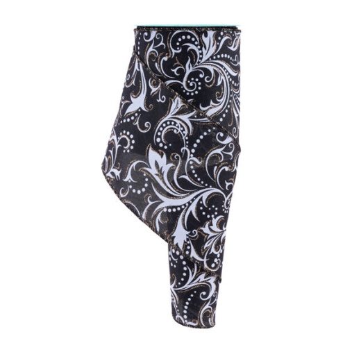 4"X10yd Leaf Filagree W/Dots - Black/White/Champagne