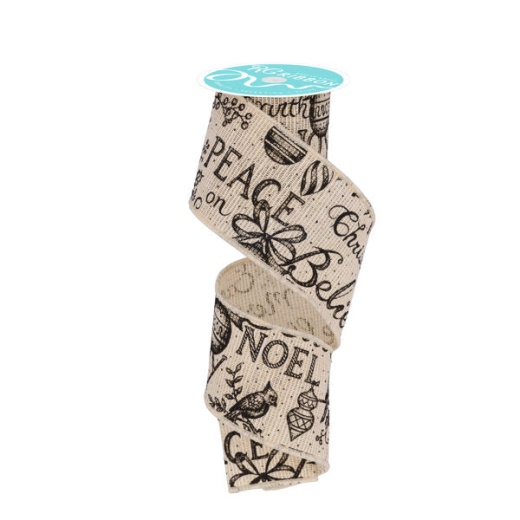 2.5"X10YD MERRY CHRISTMAS WORDS - IVORY/GOLD/BLACK - RGF1456EX