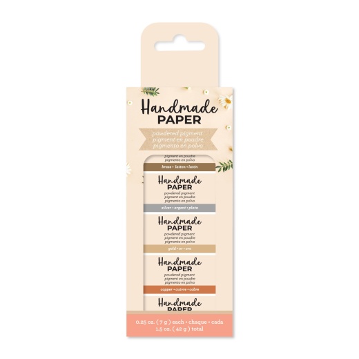 American Crafts Handmade Paper Powdered Pigment 0.25oz Metallics Easily add a sparkle of color to your handmade paper with the powdered pigment. Pack comes in 4 colors: brass, silver, gold, and copper. Includes package comes with 4 colors: brass, silver, gold and copper.