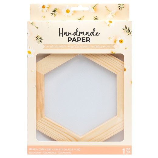 American Crafts Handmade Paper Mold And Deckle Kit Hexagon The perfect tool to help you create hexagon shaped handmade paper. The hexagon Mould & Deckle helps you shape and drain your paper mixture, turning it into paper for your next creative project. Makes a 5x5.8 heart shaped paper. Includes 1 mould & deckle to make a 5x5.8 hexagon shape paper.
