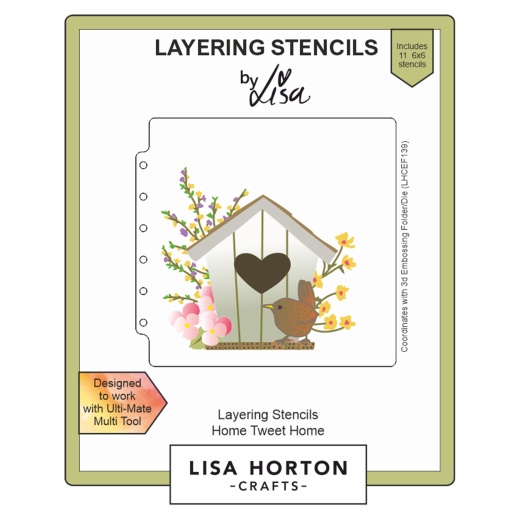 Lisa Horton Crafts Layering Stencils Home Tweet Home Lisa Horton Crafts Layering Stencils allow layered colour to be applied to the image, enhancing any detail. Used either standalone or with a co-ordinating Embossing Folder.