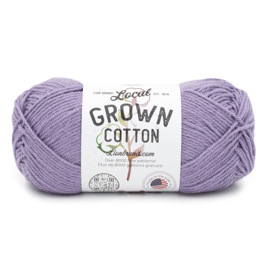 Lion Brand Local Grown Cotton Yarn Lilac Experience the true essence of American craftsmanship with Local Grown Cotton, which is 100% American made from start to finish, just like its sibling, Local Grown. It's great for many different types of projects, from year-round garments and accessories, home decor including kitchen towels, to blankets and beyond. From jewel tones to neutrals, there's something for everyone! Weight Category: 4. Content: 100% Cotton. Put up: 3.5oz/100gr, 184yd. Dyelotted: we try but are not always able to match dyelots. Available in a variety of colors. Each sold separately. Hand Wash, Do Not Bleach, Dry Flat, Do Not Iron, Do Not Dry Clean. Made in USA.