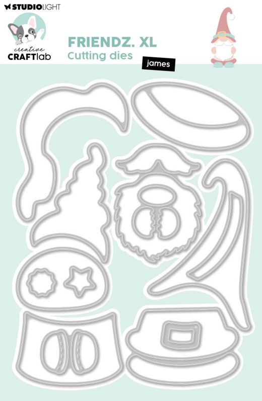 This cutting die set includes everything you need to build an adorable gnome named James including lots of accessories. This set will make a great addition to cards, scrapbook layouts and journal pages.Part of the Creative Craft Lab Friendz collection. 14 pcs