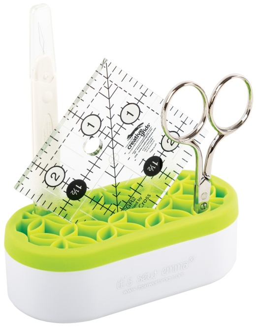Measuring a mere 2x4.15 inches, the Mini Stash 'N Store is remarkably compact, allowing it to fit seamlessly into even the most cramped of spaces, making it perfect for sewing classes, workshops, or on-the-go projects. The clever design features multiple pockets and a central divider, providing ample room to store an impressive array of items, including scissors, rulers, threads, needles, and more. The smooth, silicone pockets offer a sturdy grip, ensuring that your valuable tools and supplies remain securely in place, even when you're on the move.