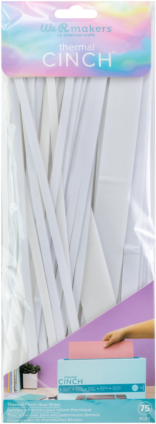 We R Thermal Cinch Glue Strips Bundle 75/Pkg Includes: 30 6.5mm Thermal Binding Strips, 30 12mm Thermal Binding Strips, and 25mm Thermal Binding Strips