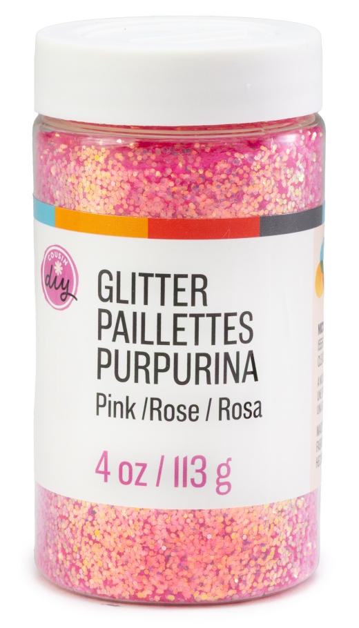 CousinDIY Glitter 4oz Pink Make your crafts shine with 4oz Black Glitter. Ideal for creating bold, dramatic projects, this glitter adds a sparkling finish to any dark-themed or Halloween-inspired craft.