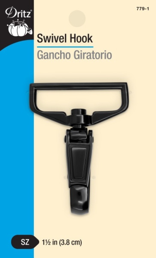 Dritz 1-1/2" Swivel Hook Black Dritz Swivel Hooks put the final touches on a variety of DIY sewing and crafting projects They finish key chains, bracelets and other belting or cording crafts. Used with D-rings, they create detachable or internal hooks in bags and totes. Available in a variety of colors, each sold separately.