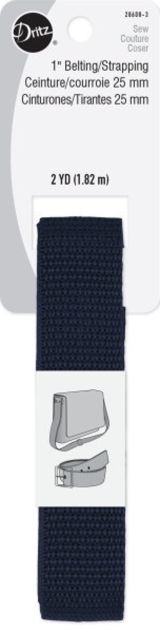 Dritz 1" Polypro Belting Strapping Navy Dritz 1 wide polypro belting is used for making straps and handles for a variety of sewing projects, such as totes and bags; it is also ideal for DIY belt making. Available in a variety of colors, each sold separately.