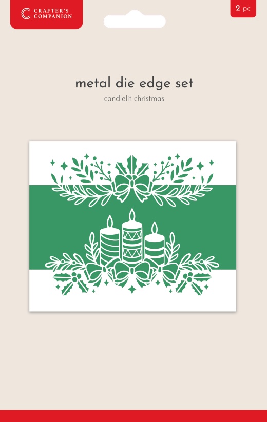 Bring a warm glow to your crafts and projects with the Candlelit Christmas Metal Die Edge Set by Crafter’s Companion. This set of dies is designed to be used together for your handmade Christmas cards, die cutting the top and bottom of a rustic scene of candles lit amongst traditional festive foliage.