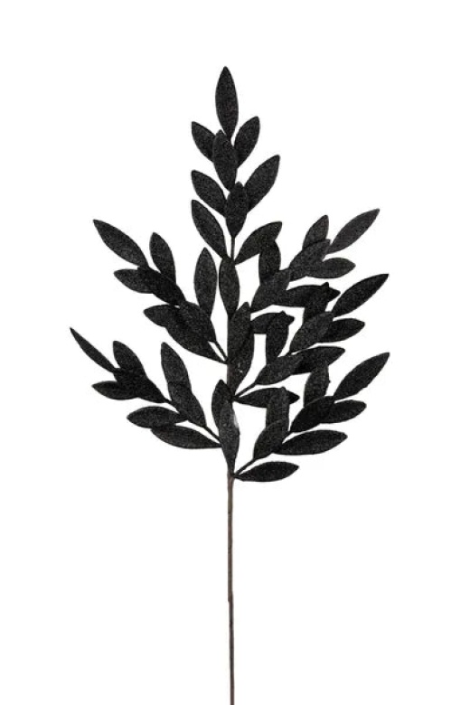 32"L Glitter Bay Leaf Spray-Black-XS235302