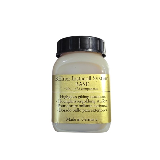 Instacoll is a revolutionary system for exterior gold leaf gilding and interior leafing with gold and silver leaf. A Super Shine or mirror gloss finish is achieved without agate burnishing. It is a water based two part system with an unlimited open gilding time. After Instacoll has dried completely, apply the Activator to the area ready for gilding. Let dry and apply the leaf. The ultimate mirror gloss is obtained when gilding on a completely smooth surface with patent leaf. Instacoll may be applied to most dry, stable, solid interior and exterior surfaces including properly primed wood, plaster and metal.