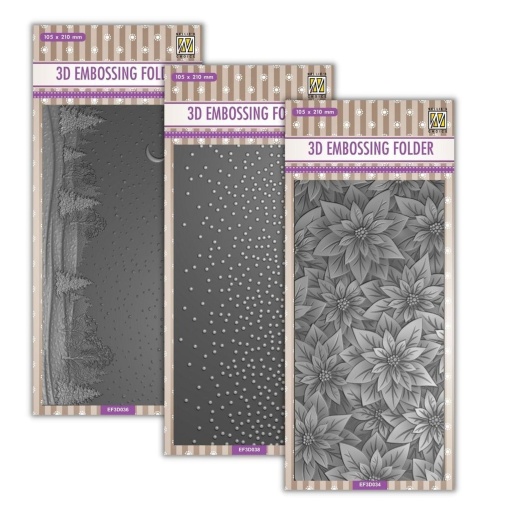 Winter Theme Slimline 3D embossing folder. These embsossing folders create a deep impression in your cardstock for a 3D effect. Create wonderful celestial backgrounds for any season or celebration.