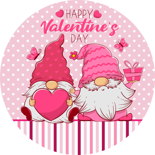 Happy Valentine's Day Gnome Love Accent Sign - Made In Usa Vinyl Sticker / 12 Inch Round