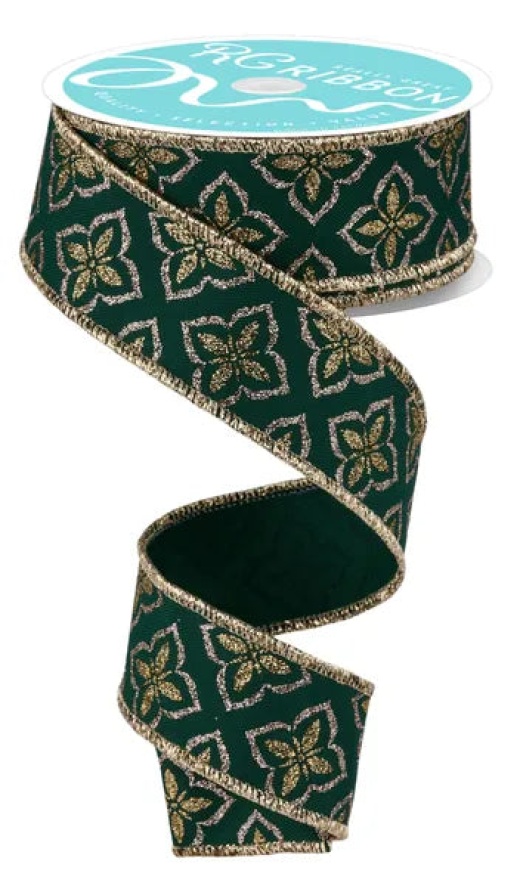 1.5" x 10yd Glitter Petals-Hunter/Lt Gold/Champagne-RGF198912