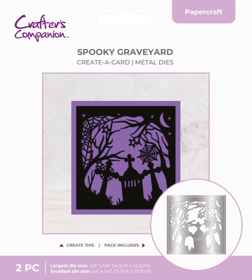 • 2-piece metal die set to create a spooky graveyard scene