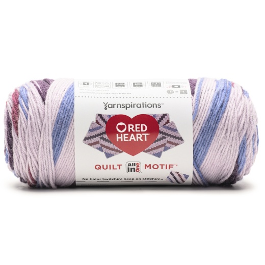 Red Heart All In One Quilt Motif Yarn Epoch Red Heart All in One Quilt Motif yarn with a repeatable sequence that allows you to crochet a continuous corner to corner motif with each color lining up to each section. The final squares of 10X10-inches can be paneled together to make a quilt motif effect. You can make a motif from one skein without needing to carry each color separately. Final round includes extra length for seaming squares together. Weight Category: 4. Content: 100% Acrylic. Put up: 8.8oz/250g, 417yd/381m. Gauge: 17sx23r = 4in/10cm on size US8/5mm knitting needles. Suggested crochet hook size: I9/5.50mm. Dyelotted: we try but are not always able to match dyelots. Available in a variety of colors, each sold separately. Machine Wash Cold, Delicate/Gentle Cycle, Do Not Bleach, Tumble Dry Low Heat, Permanent Press, Do Not Iron. Imported.