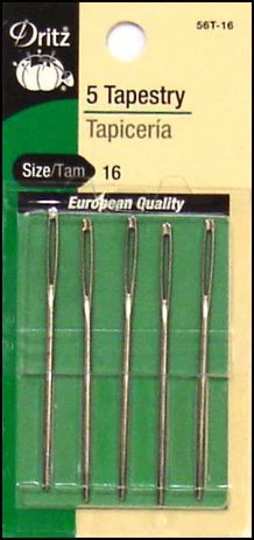 Dritz Tapestry Hand Needles Size 16 - 5/ Pack DRITZ-Tapestry Hand Needles-Identical in length to Chenilles but have a larger eye to accommodate multi-strand embroidery floss and tapestry wool. Blunt point passes between threads of even-weave fabrics and canvas without snagging or piercing fibers. Available in sizes 16, 18/22, 20, and 24/26 (each sold separately). 6 needles per package. Imported. '